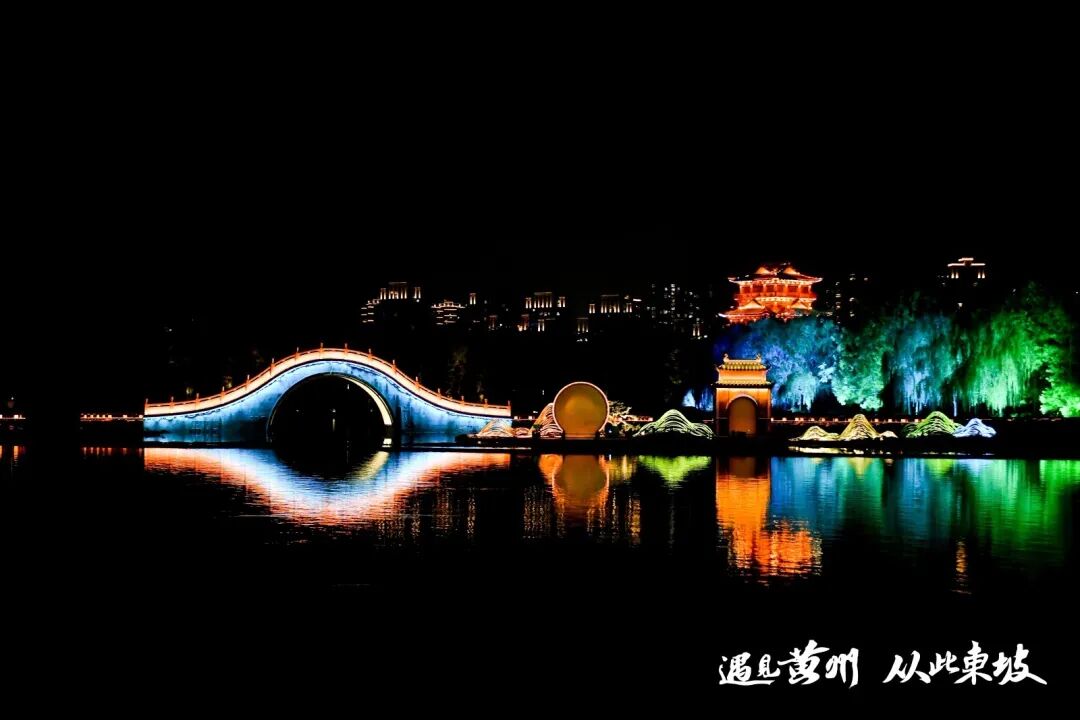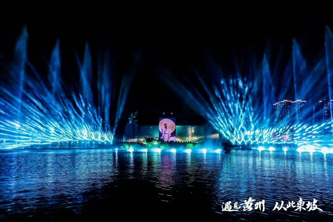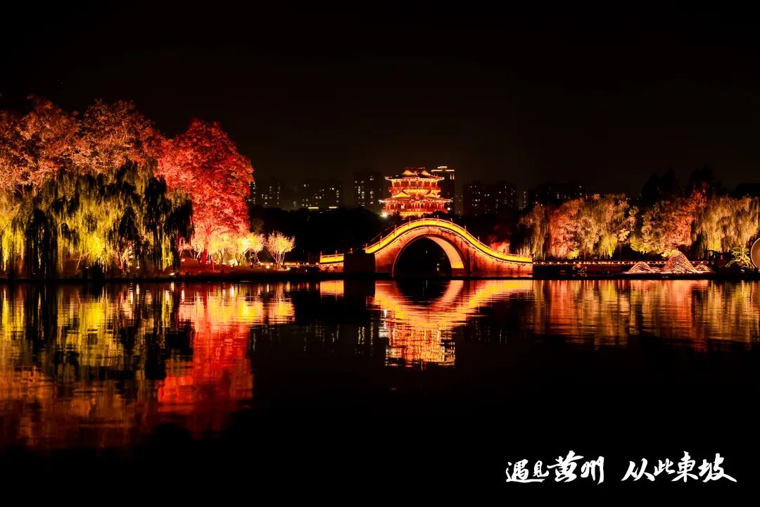 在夜幕低垂的遗爱湖公园,华灯璀璨,古风音乐悠扬。湖面上,游客乘宋风游船穿梭于光影交织、声画共鸣的湖面上,观赏飞天火壶、非遗打铁花、千灯映湖、宋韵飞天等特色表演,既可感触苏东坡的生活美学,更能与千年前的文坛领袖在精神上深度共鸣。湖岸边,千灯璀璨,万树“花”开,来自全国各地的游客摩肩接踵,悠闲地漫步其中。