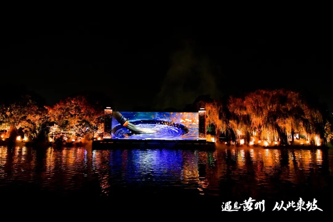 作为全国首个东坡文化沉浸式夜游项目和黄州文旅名城建设标杆性工程,紧扣“以诗为境,以月为媒”的设计理念,在4公里西湖水域游船夜游环线,打造了梦回大宋、腹有诗书、乌台诗案、寂寞沙洲、承天夜游、赤壁怀古、一蓑烟雨、千里婵娟等8大核心场景,“一景一诗词、一月一时空”,完整地再现苏轼从才子苏轼、东坡居士、再到坡仙三次震撼人心的身份蜕变。