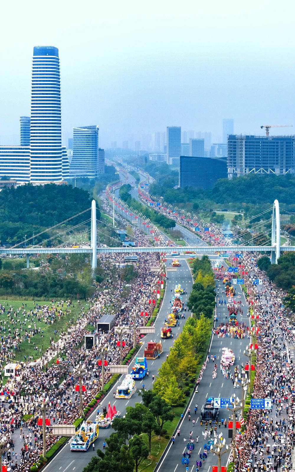 光谷花车大巡游,10万市民游客共赏河山锦绣。 城市摄影队 王玉明摄