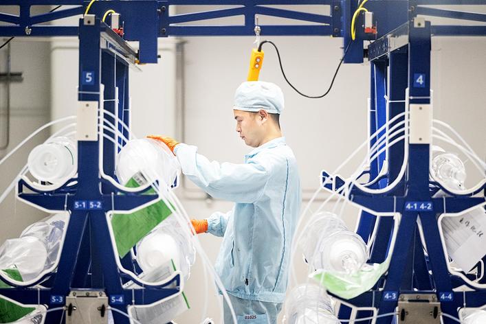 在中国药谷,禾元生物无菌车间里,“稻米造血”产品加速生产。