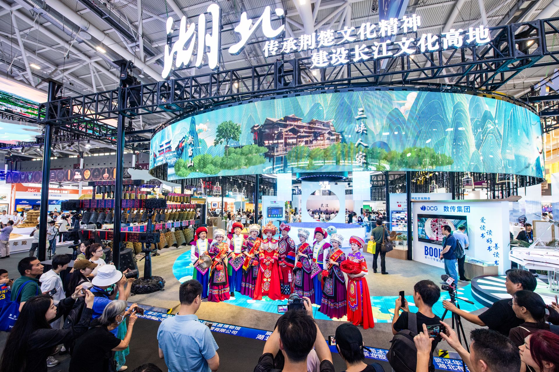 中国(深圳)国际文化产业博览交易会上,湖北馆生动展现荆楚风、长江潮、文化韵、科技感的新时代湖北文化特色。(湖北日报全媒记者 何宇欣 摄)