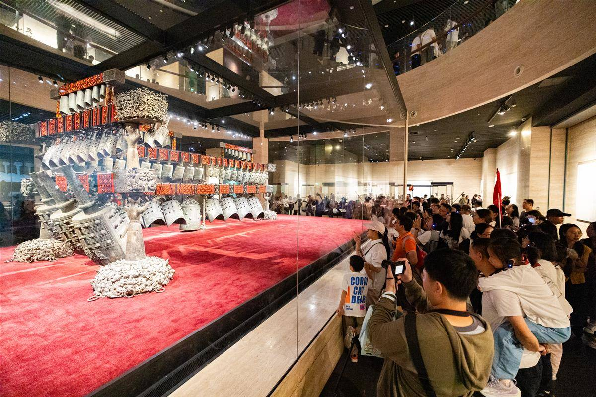 观国宝重器,赏编钟乐舞,畅游中秋之夜……今年“十一”长假,湖北省博物馆再次成为顶流打卡地。8天假期,预约天天爆满,共接待海内外游客20.6万人次,日均游客量较去年同比提高17%。