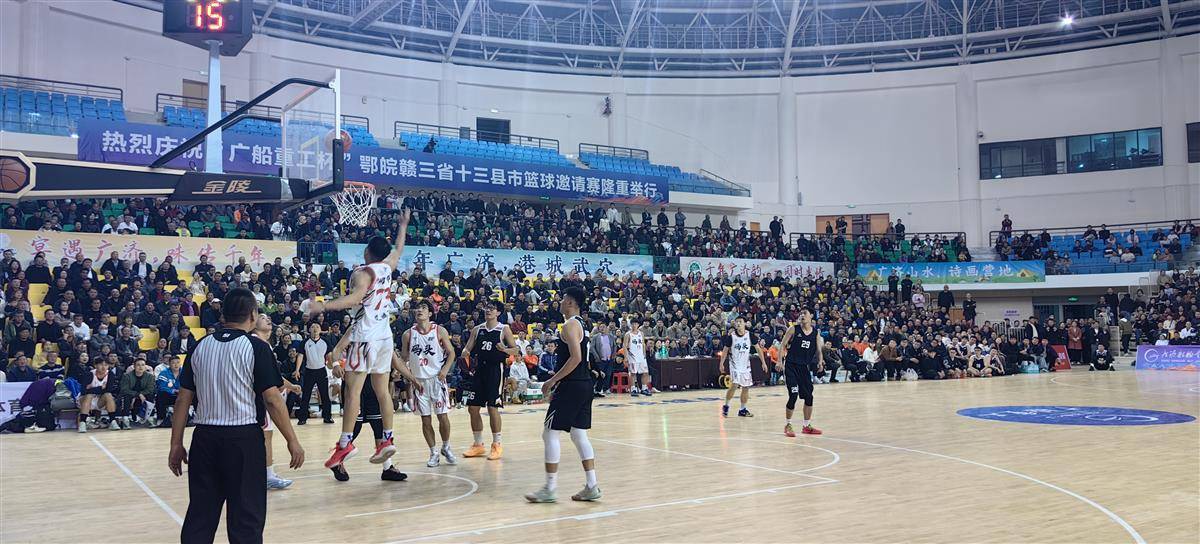 鄂皖赣三省十三县(市、区)篮球邀请赛比赛现场。