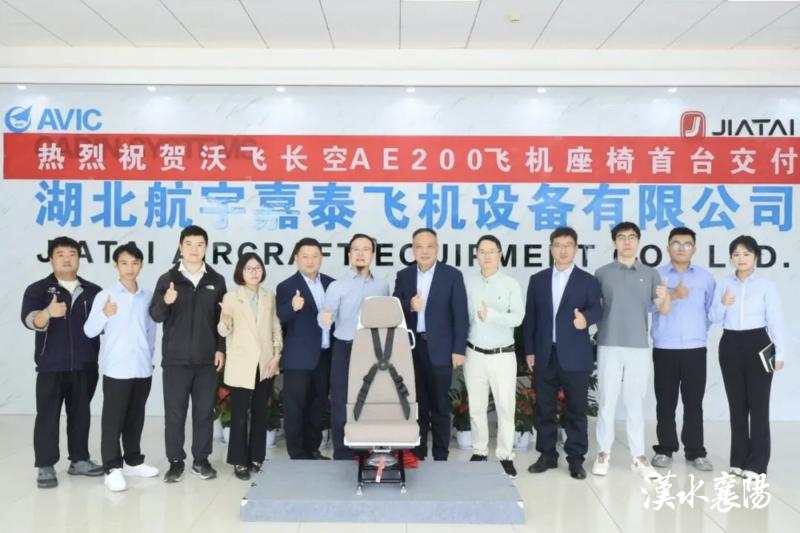 10月中旬,沃飞长空AE200-100型飞机座椅首台交付仪式在湖北航宇嘉泰飞机设备有限公司(简称嘉泰公司)举行。