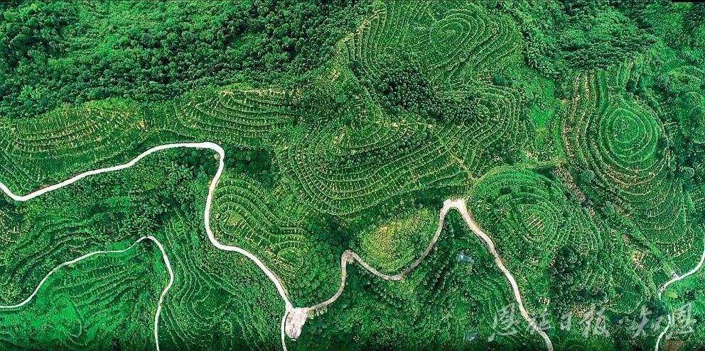 深秋时节,走进旧司镇水田坝村,漫山遍野的藤茶绿浪起伏,满目苍翠,美不胜收。