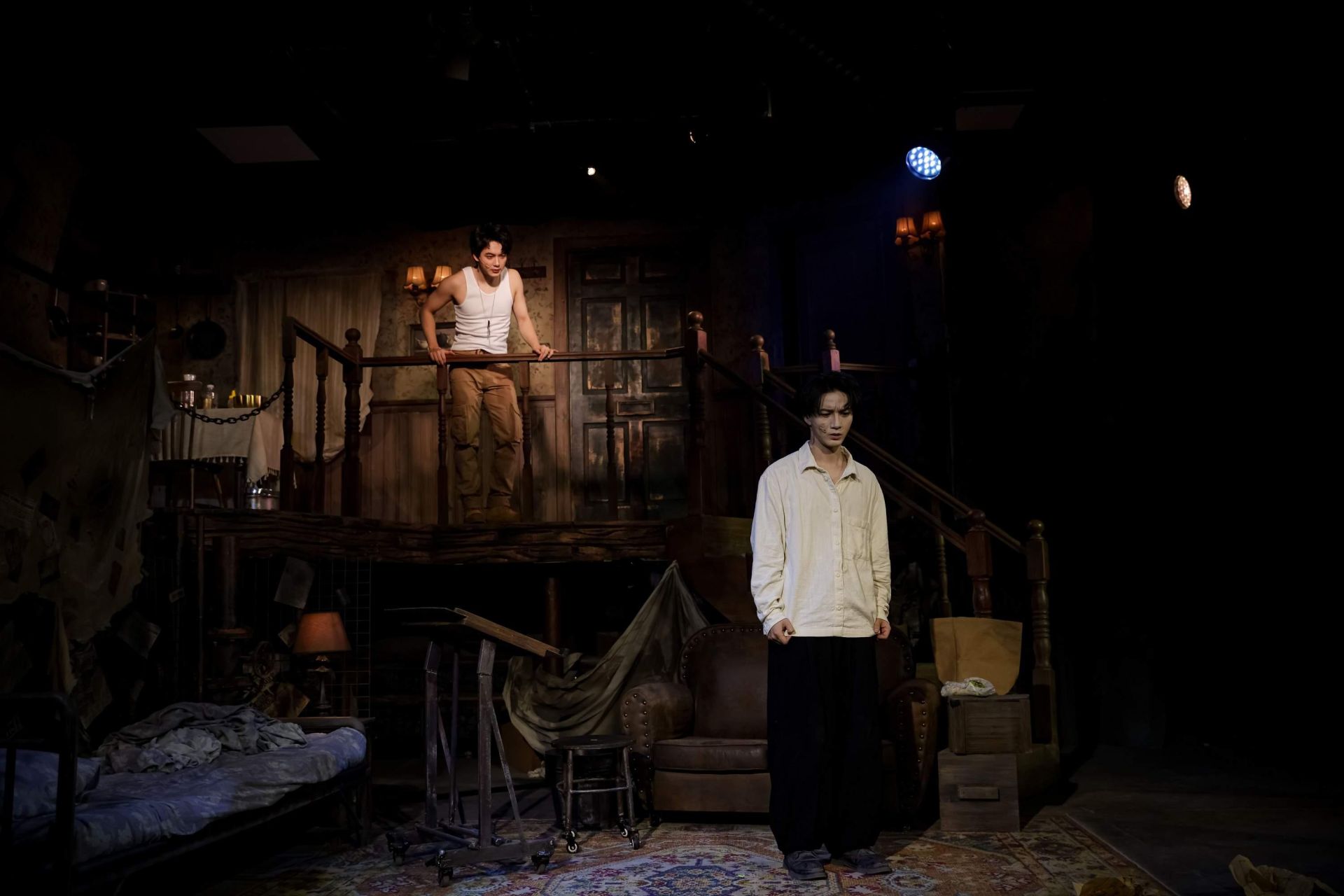 与传统剧场不同,这里没有高筑的舞台、遥远的座席。百余座位紧挨舞台铺陈,即便最后一排也能纵览全场。舞台被布置成一栋老式二层小楼,钢琴、沙发、壁橱与木质楼梯共同构建出主人公的世界。观众从踏入剧场那一刻起,便已置身于故事之中。