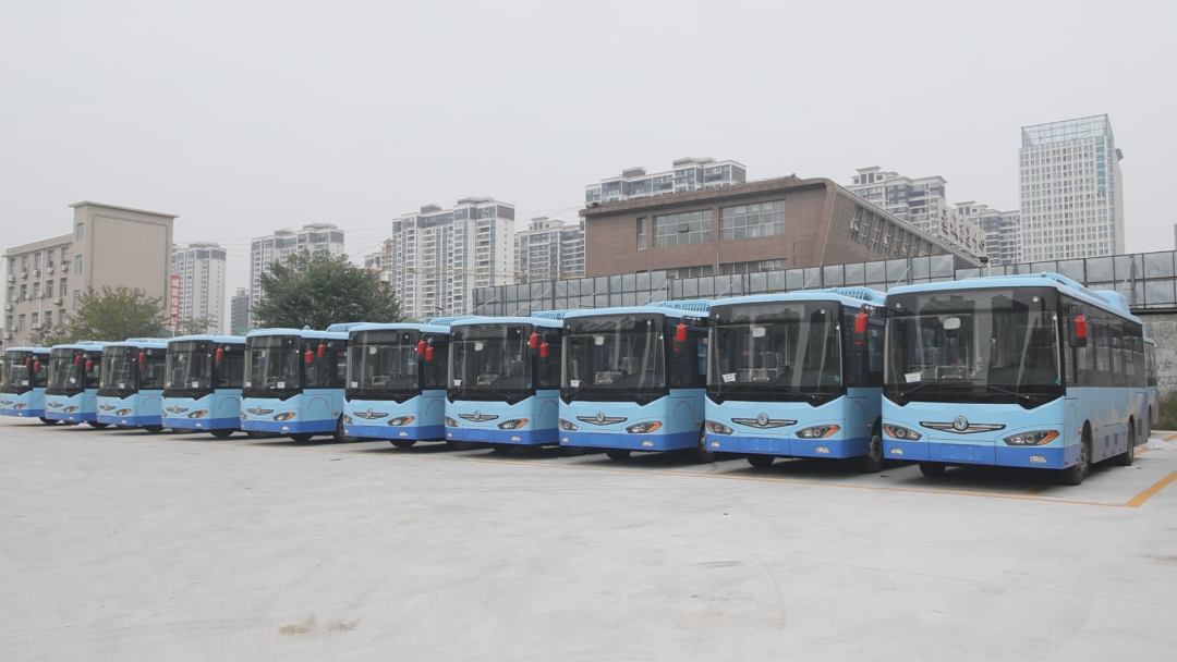 车来了。蓝白相间的新能源公交车平稳停靠。