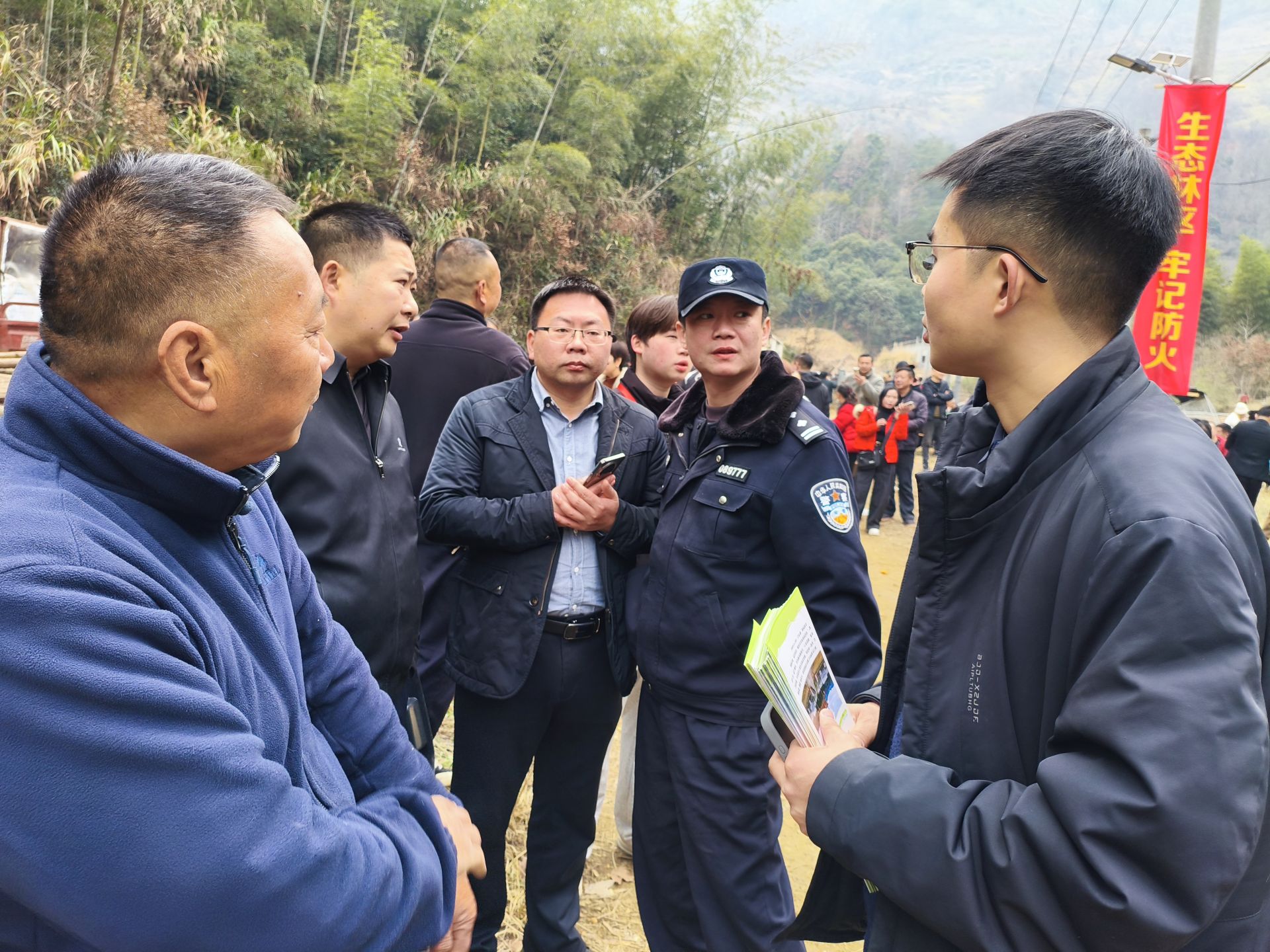 当天,120余名党员干部、志愿者和公安民警悄然进场。他们疏导狭窄山路的交通、引导停车、维持用餐秩序、清理垃圾、解答疑问。村主任汪义兵在北山岩上值守了一整天,连口饭都没顾上吃。还有许多陌生的网友,清晨六点就赶来帮忙杀猪、打扫。