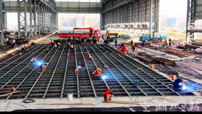 寒冬时节,武穴市龙坪镇湖北广济船舶重工集团年产100万DWT新能源船舶项目施工现场依然一派繁忙景象。凛冽寒风中,一座座现代化厂房正拔地而起,一组组船台正加紧安装。