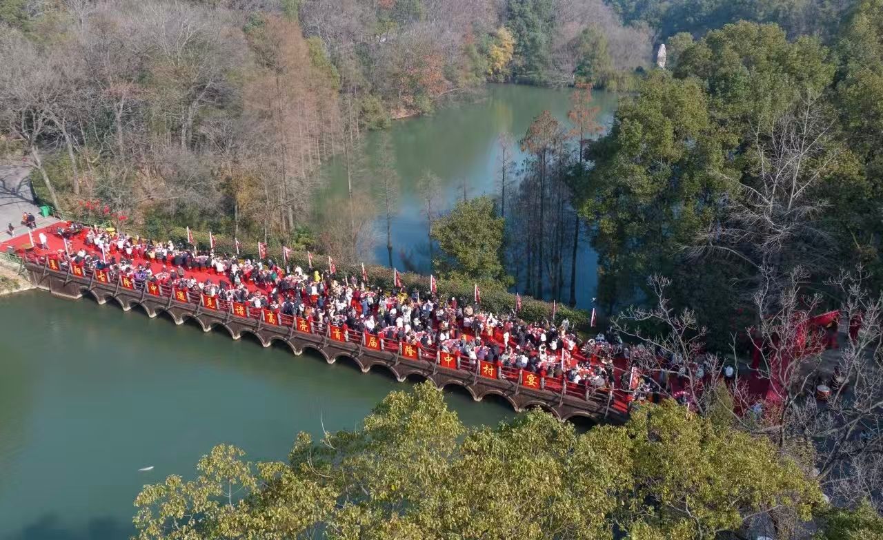近日,古隆中景区推出106.9元/人的隆中村宴超值套餐,包括景区门票、观光车费用、隆中村宴,正在热销中。山水人文景区和地道农家宴的反差式组合,让游客直呼实惠。村宴排面拉满,水榭廊桥畔,旌旗飘扬,一句句“欢迎贤士”让宾客梦回三国。湖面上,薄雾氤氲间,羽扇纶巾的“诸葛先生”乘舟缓缓而来。村宴主打地道襄阳味,蒸圆子寓意团圆美满,蒸方肉象征富足安康,蒸鱼块尽显汉江鲜味……一张圆桌10人围坐,在热气腾腾中感受触手可及的诗与远方、暖胃暖心的人间烟火。“比团餐划算,好吃!”“在景区吃村宴,体验感独特!”游客竞相点赞。