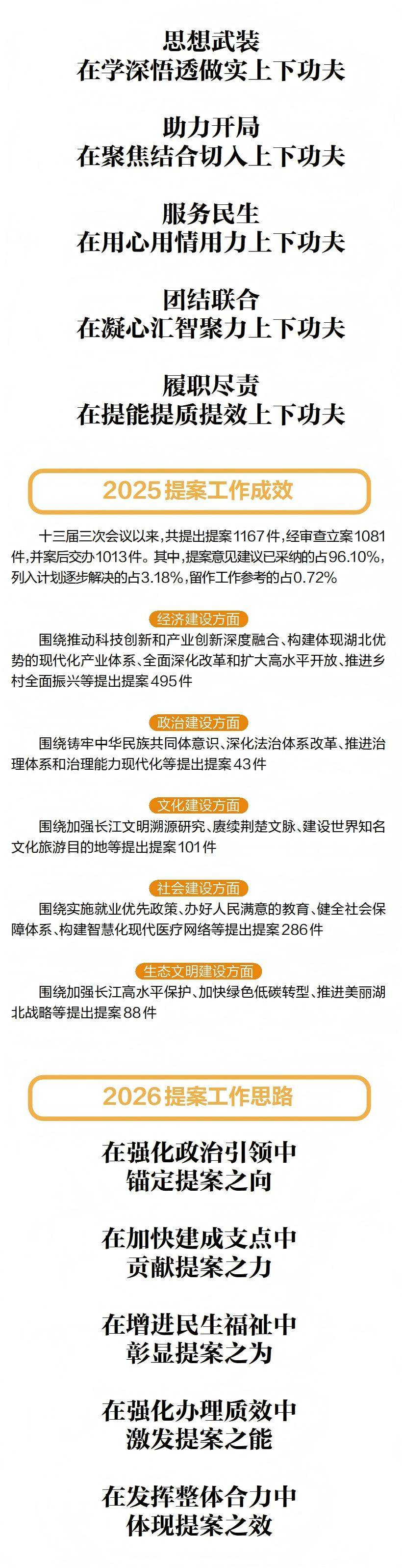 省政协及其常委会要坚持以习近平新时代中国特色社会主义思想为指导,深入贯彻中共二十大和二十届历次全会精神,深入学习贯彻习近平总书记关于加强和改进人民政协工作的重要思想、考察湖北重要讲话精神,贯彻落实中共中央决策部署和省委工作要求,坚持党的领导、统一战线、协商民主有机结合,发扬优良传统,牢记政治责任,充分发挥党的领导的政治优势、专门协商的制度优势、联系广泛的组织优势、智力密集的人才优势,围绕中心、服务大局,联系群众、服务人民,为“十五五”开好局起好步,为支点建设取得决定性进展广泛凝聚人心、凝聚共识、凝聚智慧、凝聚力量。