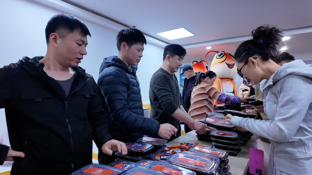 2月2日,潜江在上海报业集团食堂免费发放1000份新鲜制作的潜江小龙虾。