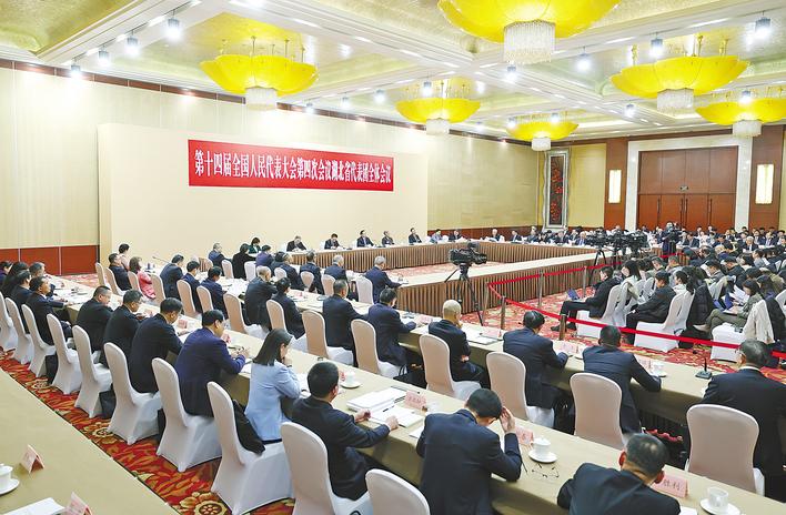 3月6日下午,十四届全国人大四次会议湖北代表团举行第三次全体会议暨媒体开放日活动,审议政府工作报告,并向中外媒体全程开放。 (湖北日报全媒记者 张朋 蔡俊 摄)