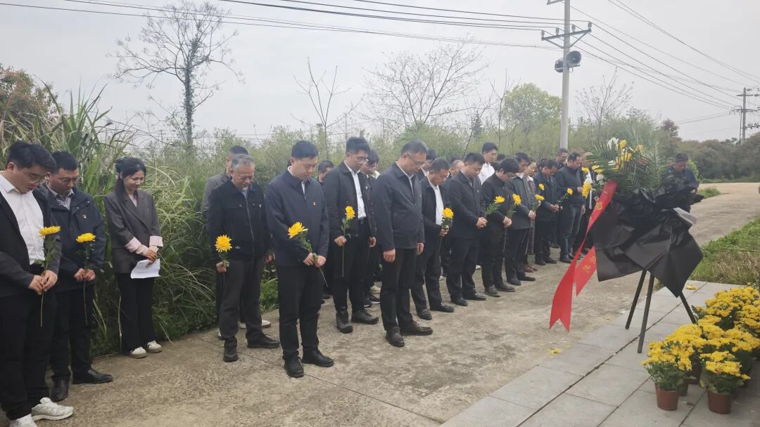 祭扫仪式上,镇党委书记吴通为花圈整理缎带,全体人员默哀三分钟,向英烈致以最沉痛的哀悼。随后,全体干部依次缓步上前,向革命先烈敬献鲜花,绕行瞻仰纪念碑,在肃穆的氛围中追思先烈、寄托哀思。