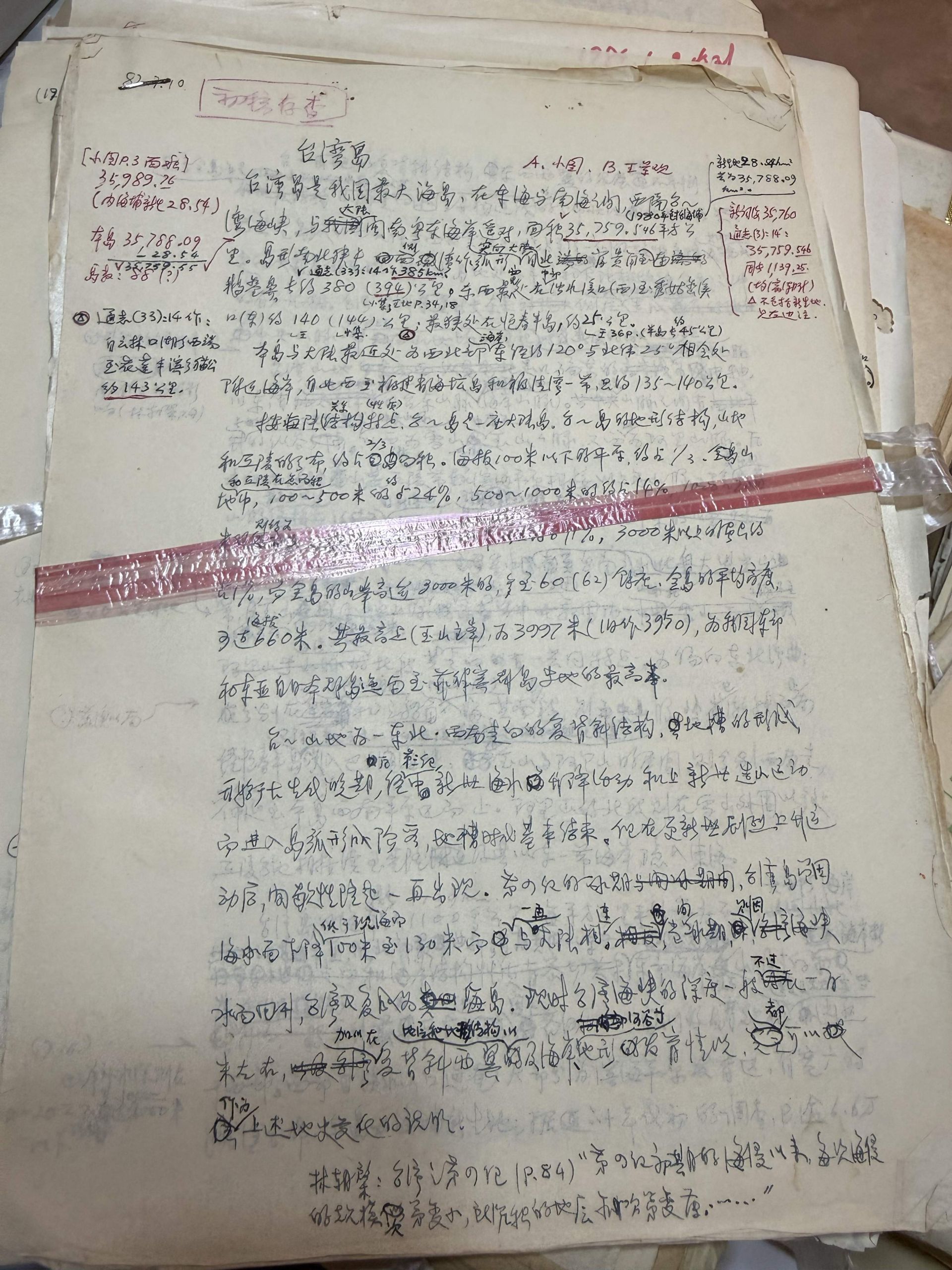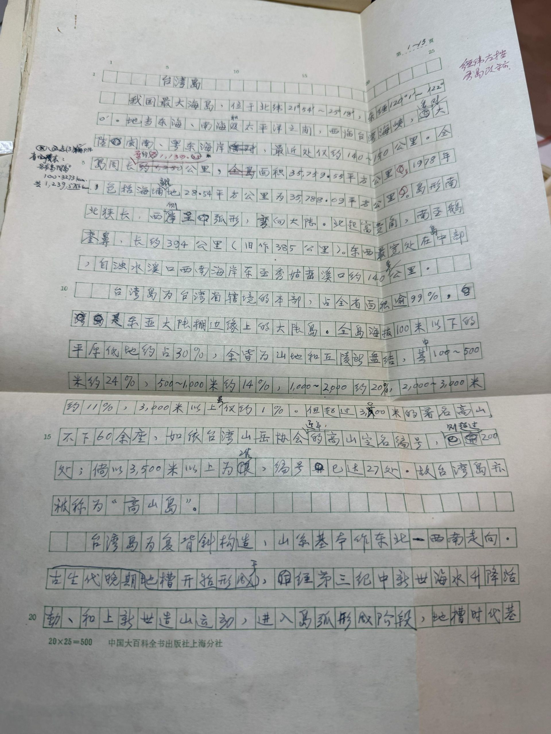 留存的手稿上,每一页都被写得密密麻麻,全是关于台湾的地理考察、地名考据、资料整理。“难以想象,在没有电脑的年代,靠手写完成这样一本著作。”邱如莹感叹。