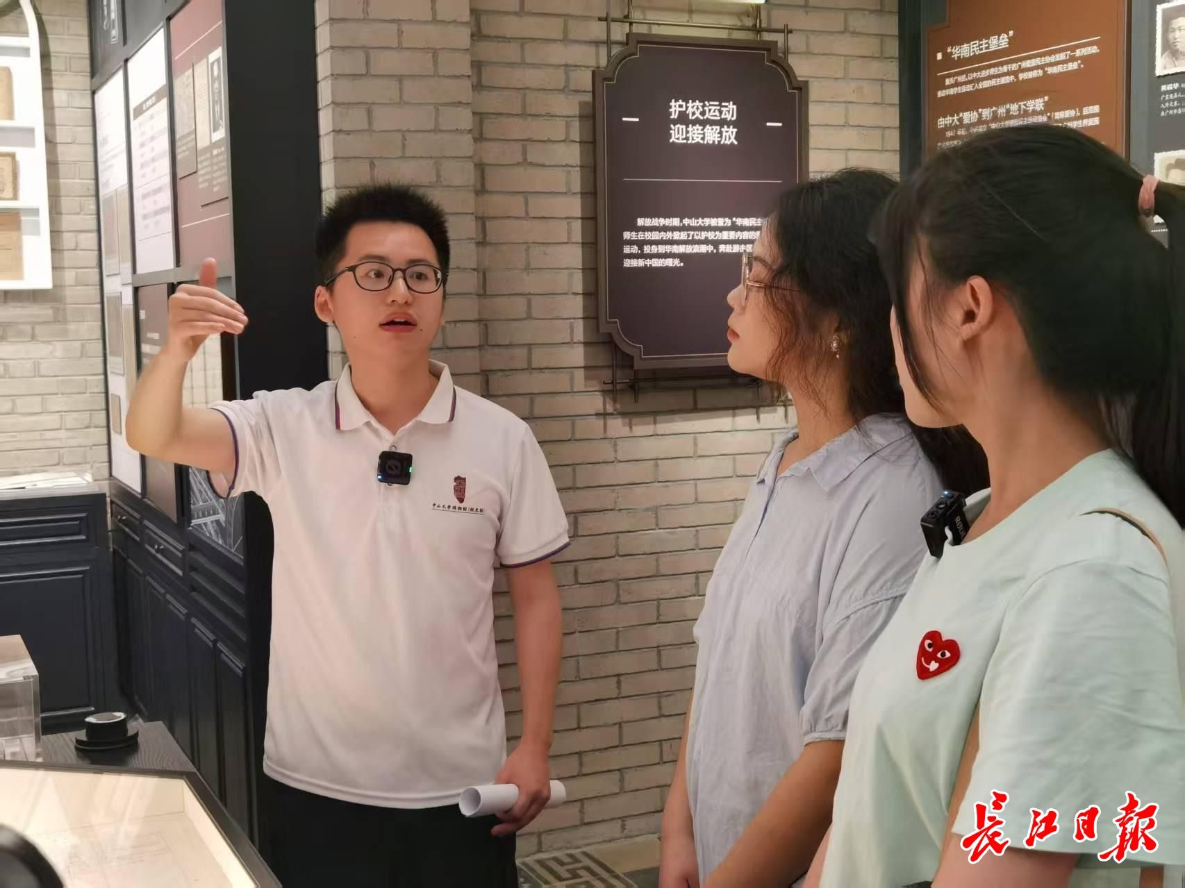 中山大学校史馆教师肖胜文特地前来接待。他告诉邱如莹和王相平,校史馆中的吴壮达展台于2024年底建成。此前,学校并不知《日月潭》作者就是校友吴壮达,是该校历史系教授安东强发现线索,经人民教育出版社回函确认的。
