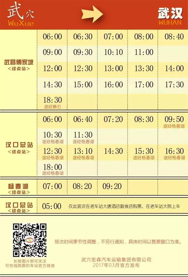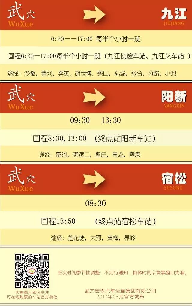 收藏 | 武穴车站长途客运线路班次时刻(2017年3月份更新) 2017-03-24 09:01 0 武汉往返 黄石往返 黄州往返 黄梅往返 九江、阳新、宿松 长途班线 市内班线 来源 | 武穴宏森 整编 | 武穴新媒体中心 投稿邮箱 | 514944532@qq.com