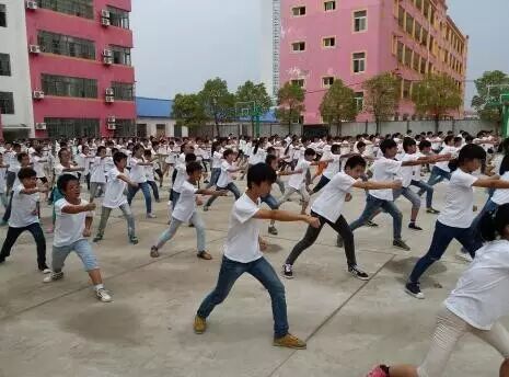本月是我市开展的第5个全民国防教育月活动,为了积极响应武穴市委关于开展爱国主义教育运动的号召,岳飞文武学校,中港外国语学校两校的学生在各班班主任的帶领下,利用早操,体育课,课外活动时间,认真练习岳家拳,进行尚武爱国,精忠报国爱国主义教育。