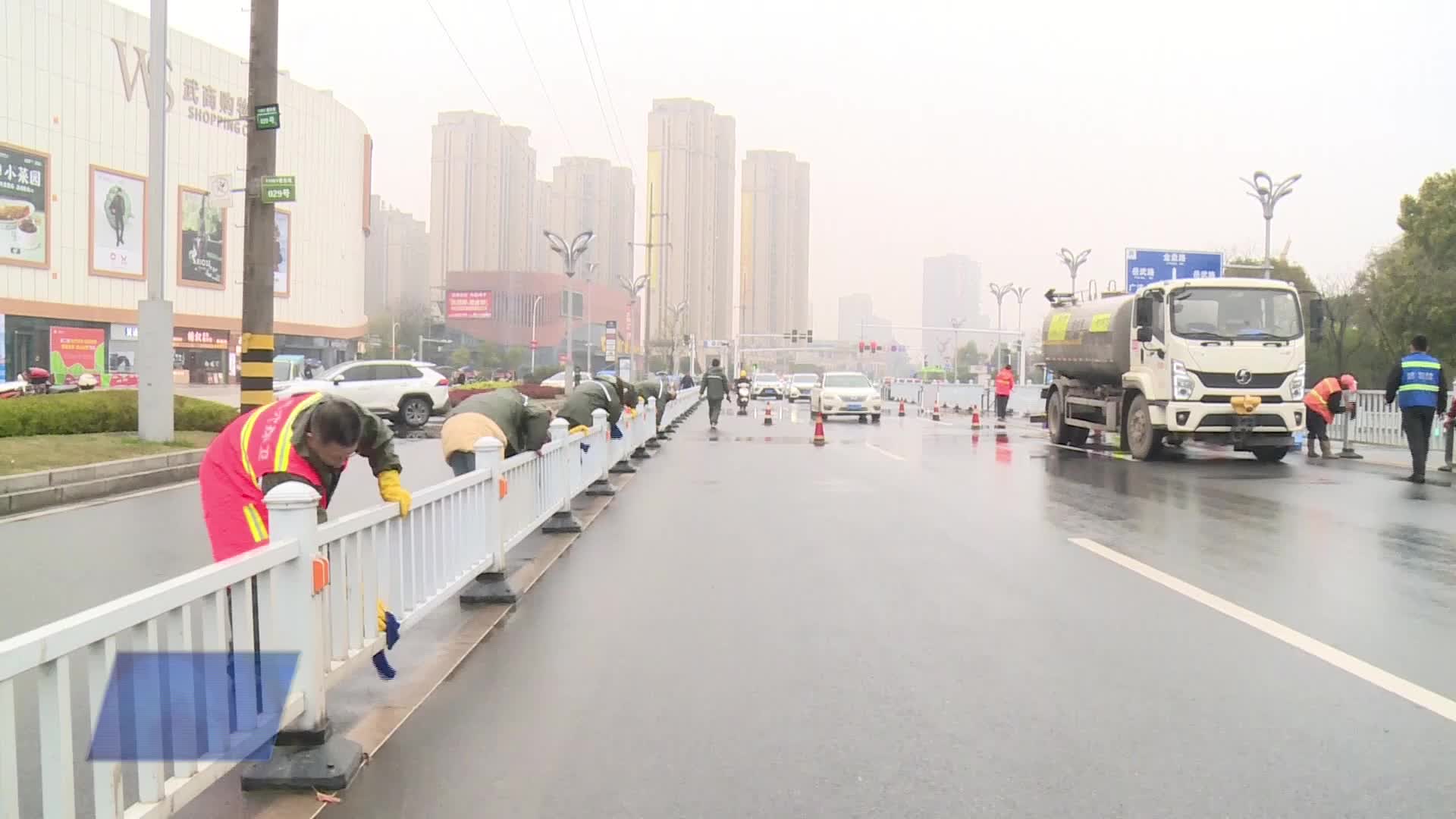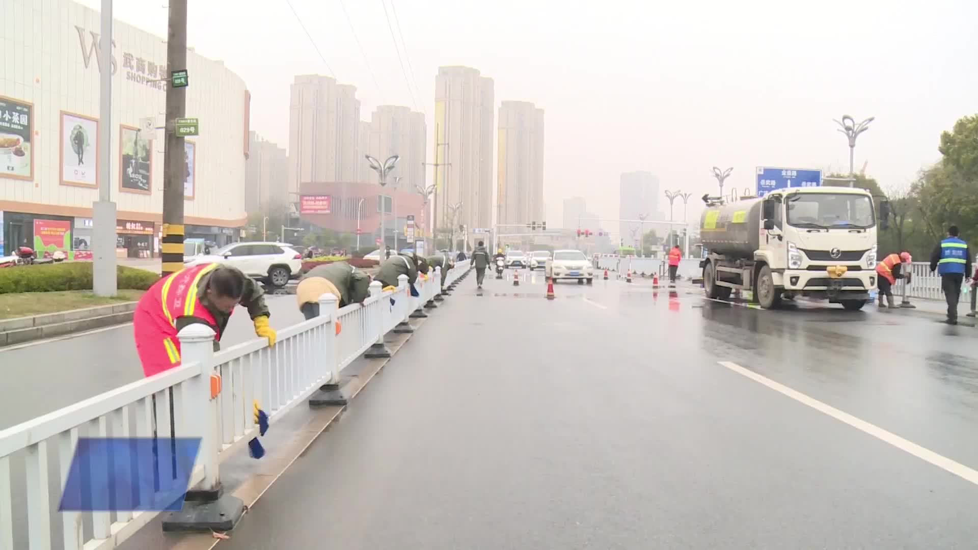 市环卫中心:趁雨“精洗”护栏 擦亮城市颜值