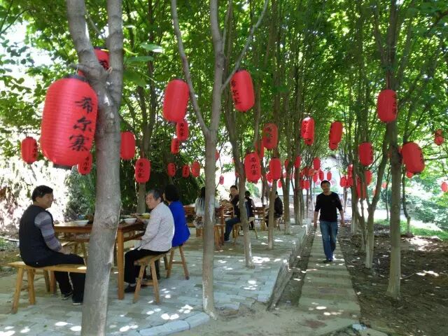 今年夏季,希尔寨生态农庄把餐厅搬到树林里,让大家回味一把儿时在树底下吃饭的感觉。