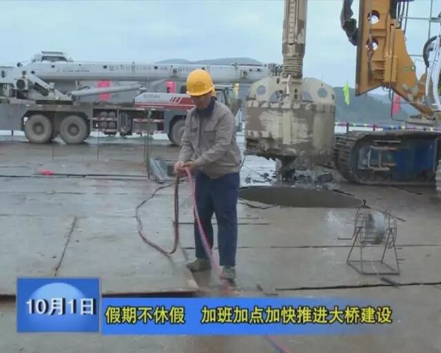 武穴长江公路大桥项目部工程部部长郭勇介绍说,为加快大桥建设,国庆期间,项目部每天都实行三班倒工作制,使大桥建设不停歇。下一个工程任务是将进行钢筋安装及水泥浆灌注。