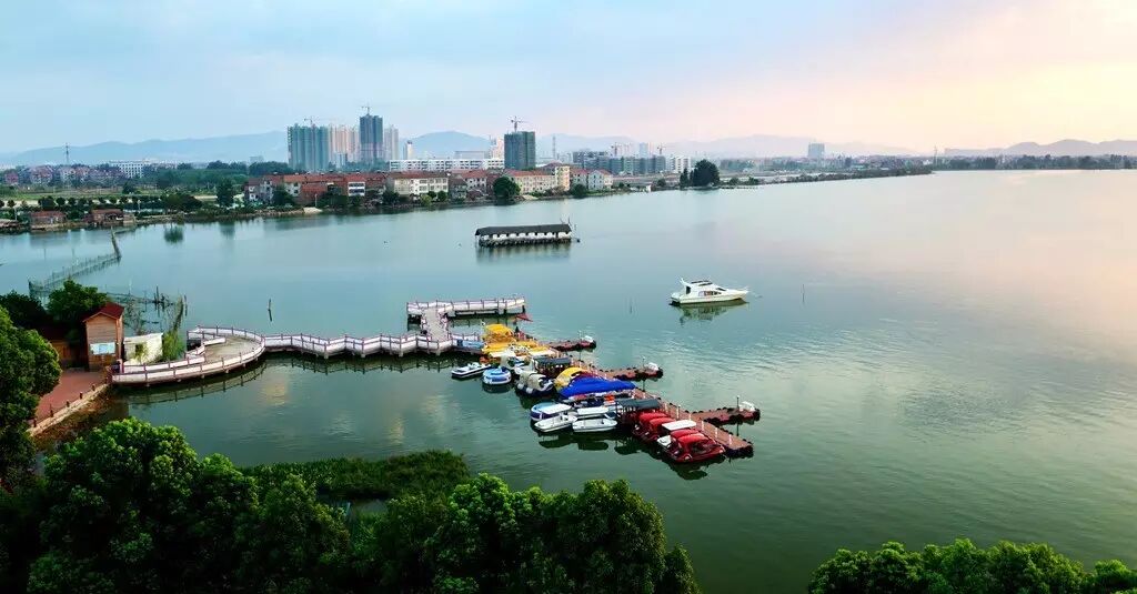 武山湖因秋天而变得沉静,没有夏日的狂风骤雨,没有充沛河水注入,有的是湖水清澈,有的是湖面宁静。偶尔几只水鸟掠过水面,泛起点点圈晕,一不小心,惊动了湖中的武山寨。夕阳西下,驾上一叶扁舟,向湖中漫游,任由思绪在水天间漂荡,难怪东坡先生乘舟时发出“飘飘乎如羽化登仙,浩浩乎而不知其所止”的感慨。不知何时,皓月悬空,水上月,水中月,月月分明,亦真亦幻,这可能是武山湖独特的魅力!名为武湖明月,实为武湖秋月。