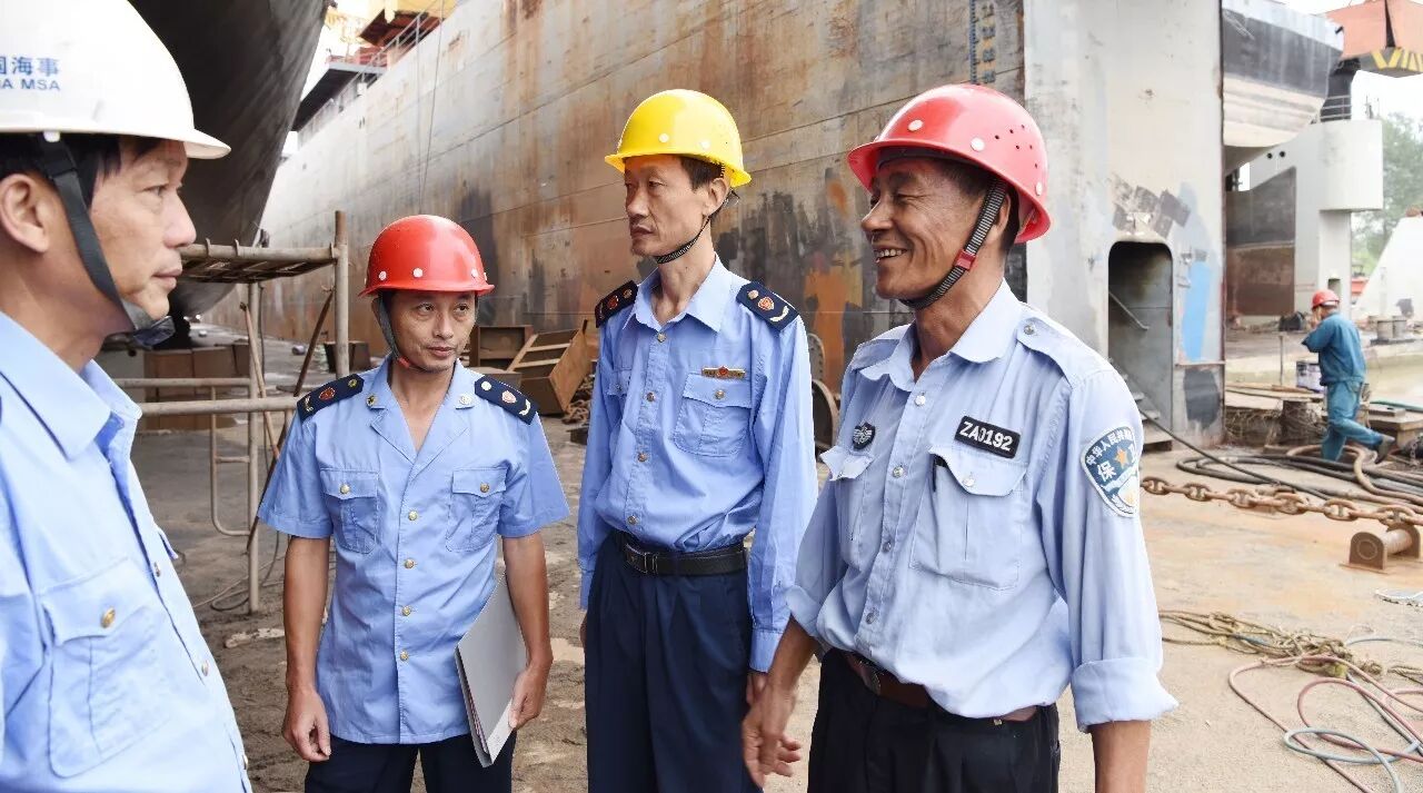 港口工商所在辖区内的长江船舶修造有限公司,与公司安全治安人员一起检查安全隐患防控工作。