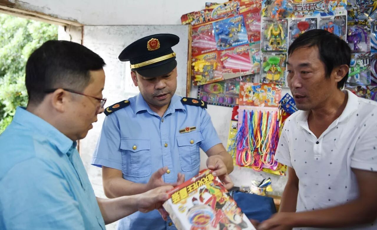 余川工商所干部认真检查松山咀中学、小学校园周边店经营的情况,严格杜绝“三无产品”在这里有立足之地。