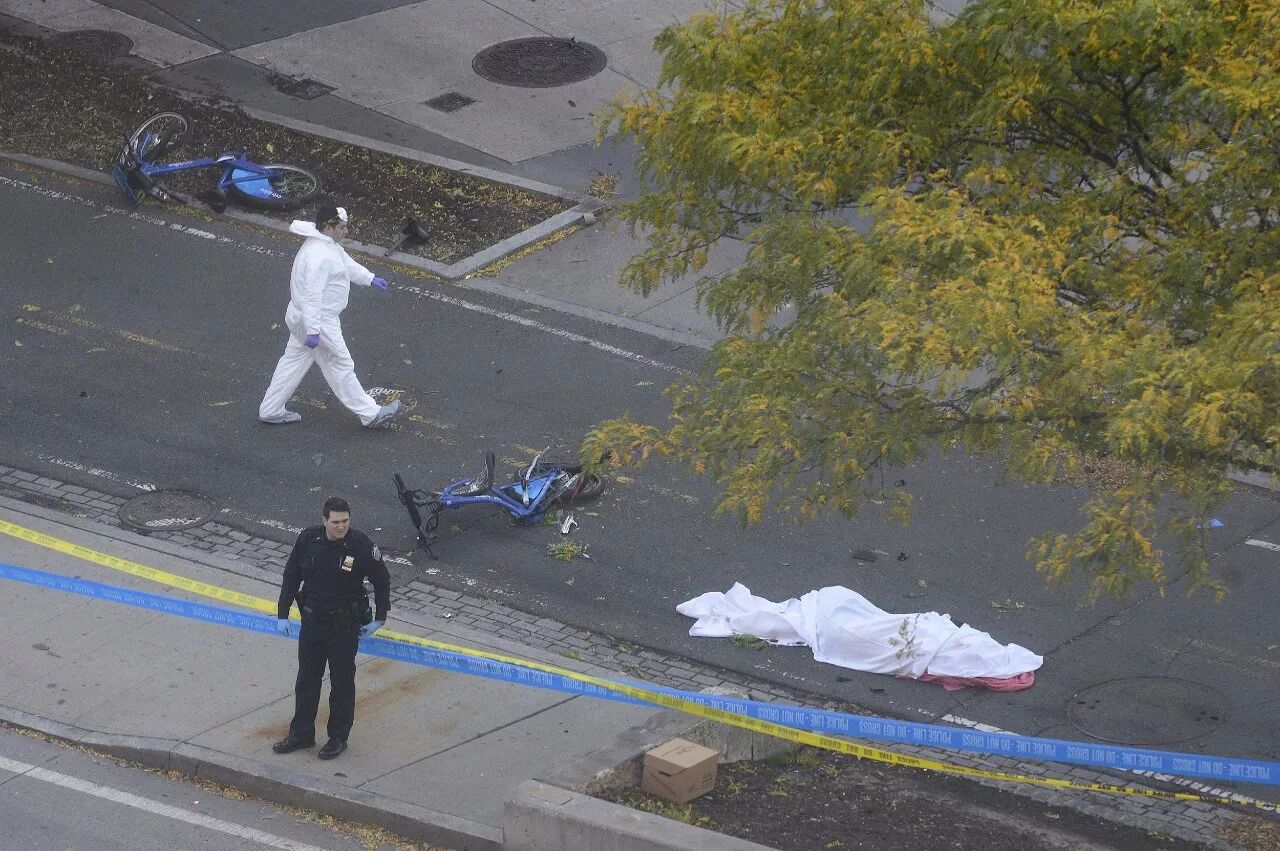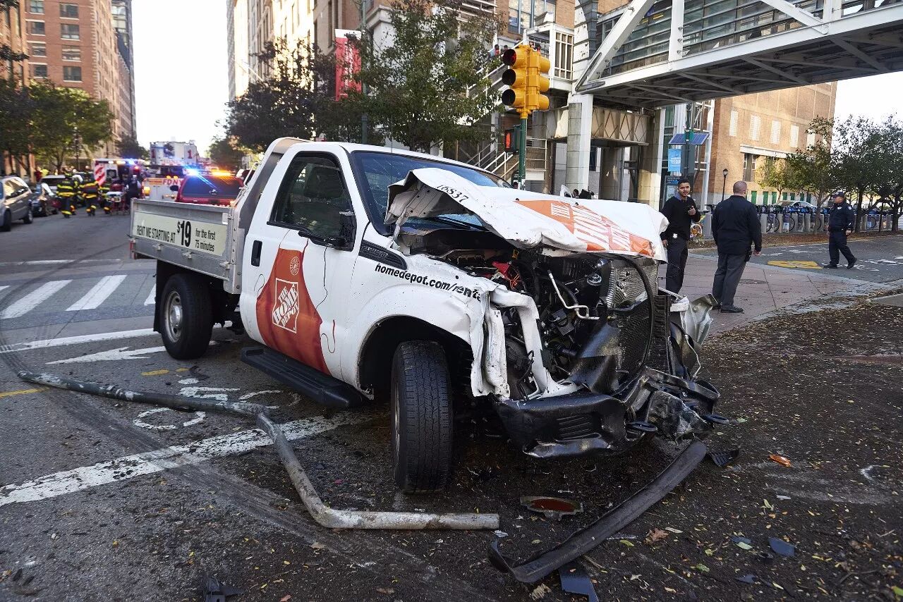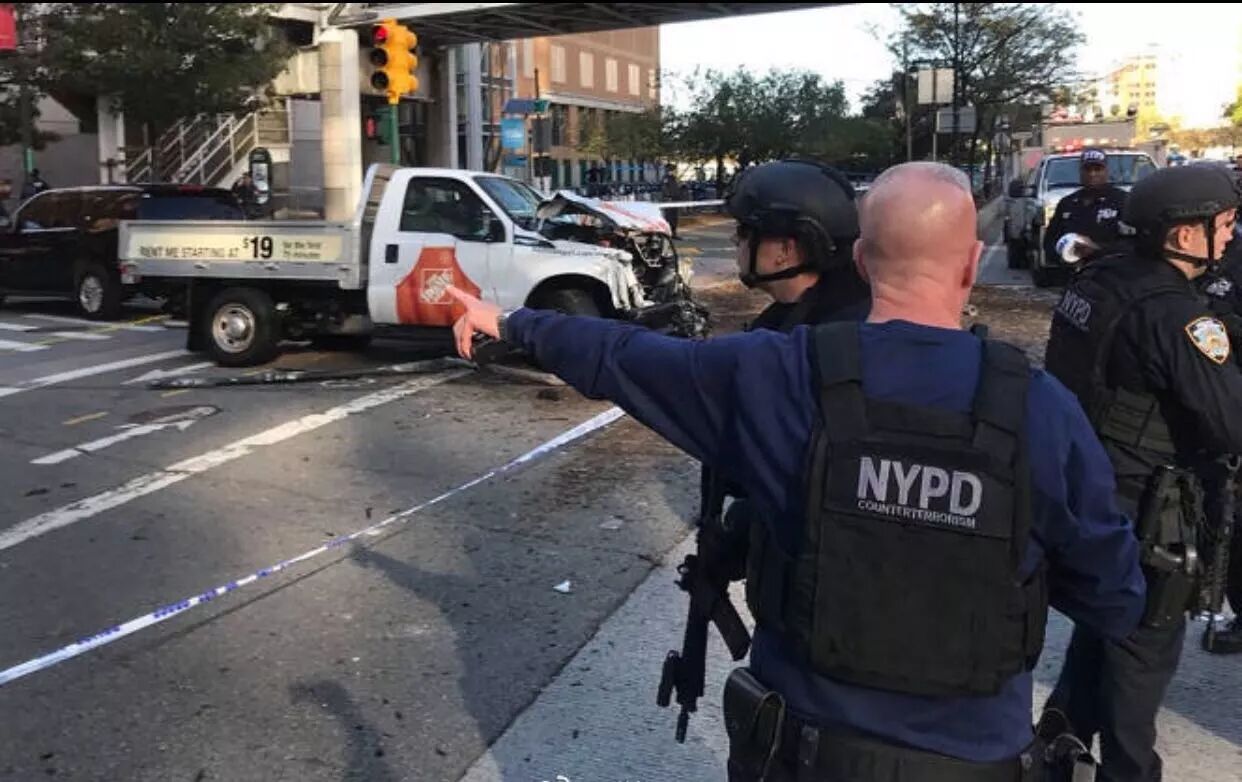 纽约警方表示,当地时间下午3时许,一名男子驾驶一辆皮卡,逆行开上曼哈顿西边高速路(West Side Highway)沿路较繁忙的自行车道上,碾压过几个人后继续向南开,在西街(West Street)和钱伯斯街(Chambers Street)交叉的地方撞上另外一辆车后,无法再动弹。司机随即走出车门,掏出两把枪并在钱伯斯街上边跑动边开枪。有目击者表示,司机在下车后曾高喊口号。