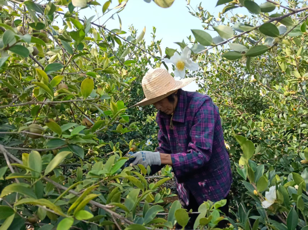 集体油茶基地的投产见效,为当地无法外出务工的村民带来了“家门口的收入”。在采摘队伍里,社区居民周保妹这样的留守群体不在少数,她们平时在油茶基地务工,实现了顾家与增收的双赢。“我们这些年纪大一点的,平时在家里带孩子,空闲的时候在集体油茶基地里务工,一年下来可以搞6、7千块钱。”周保妹对现在的生活状态很满足。