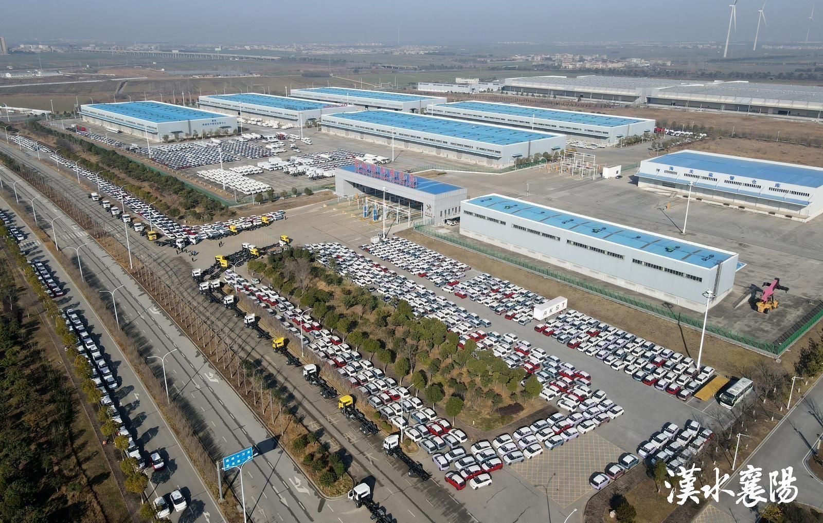 ▲在襄阳综合保税区,一批批汽车正等待“出海”