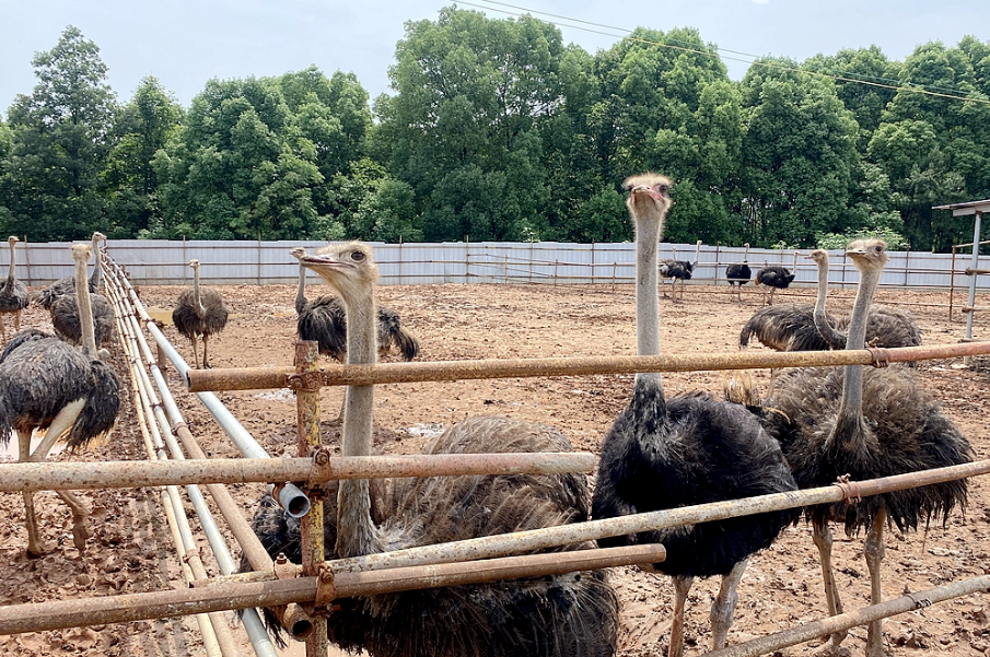 在村里的乌鸵邦鸵鸟养殖基地,400多只鸵鸟或埋头吃食,或悠闲散步。“鸵鸟浑身都是宝,它的肉、蛋、羽毛都能卖钱,去年基地一共卖了200万元。”“85后”鸵鸟养殖基地负责人文金华,掰起指头跟记者算增收账。