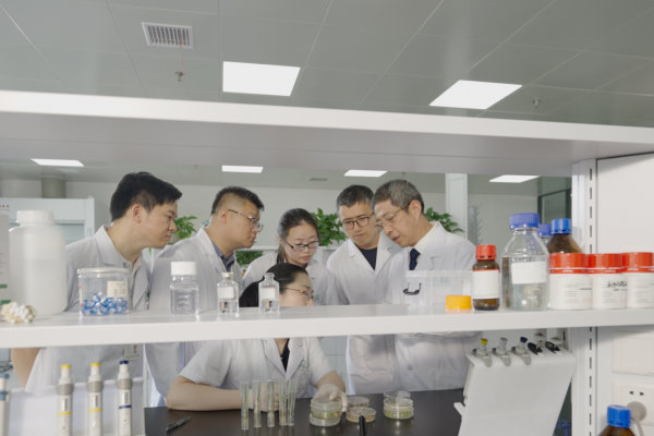 杨代常(右一)带领研发团队做实验。