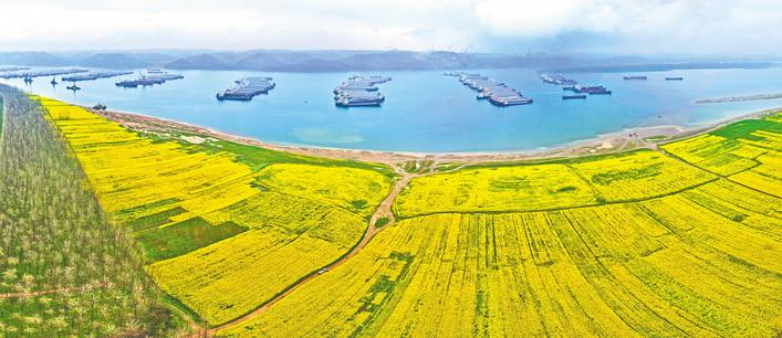 长江岸线枝江段金黄花海绵延铺展,与奔流江水相映,尽显长江生态修复的壮阔之美。(湖北日报全媒记者 刘曙松 通讯员 郑子贤 黄路遥 摄)